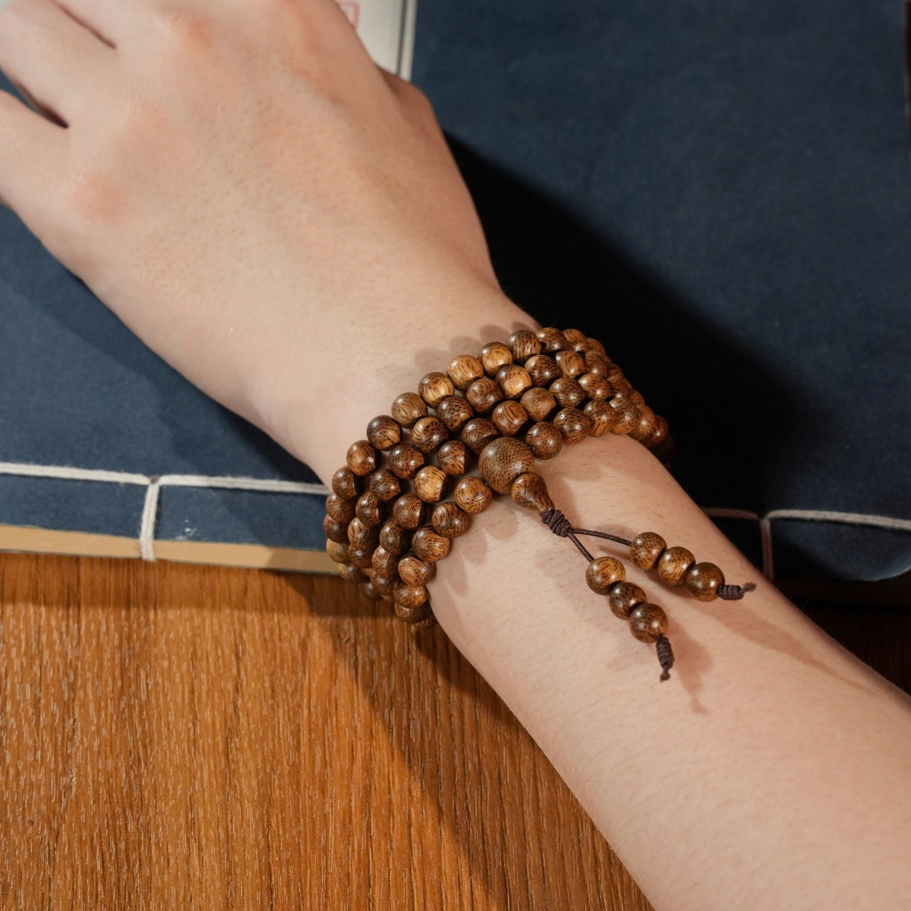 Vòng trầm hương 108 hạt là một sản phẩm Trang sức phong thủy làm từ gỗ Trầm Hương. Vòng gồm 108 hạt mang ý nghĩa tâm linh Phật giáo cực kỳ sâu sắc và ý nghĩa. Vòng tay trầm hương 108 hạt (chuỗi 108 hạt) là sự kết hợp giữa Tràng hạt; mang lại bình an và chiếc vòng trang sức thời thượng.